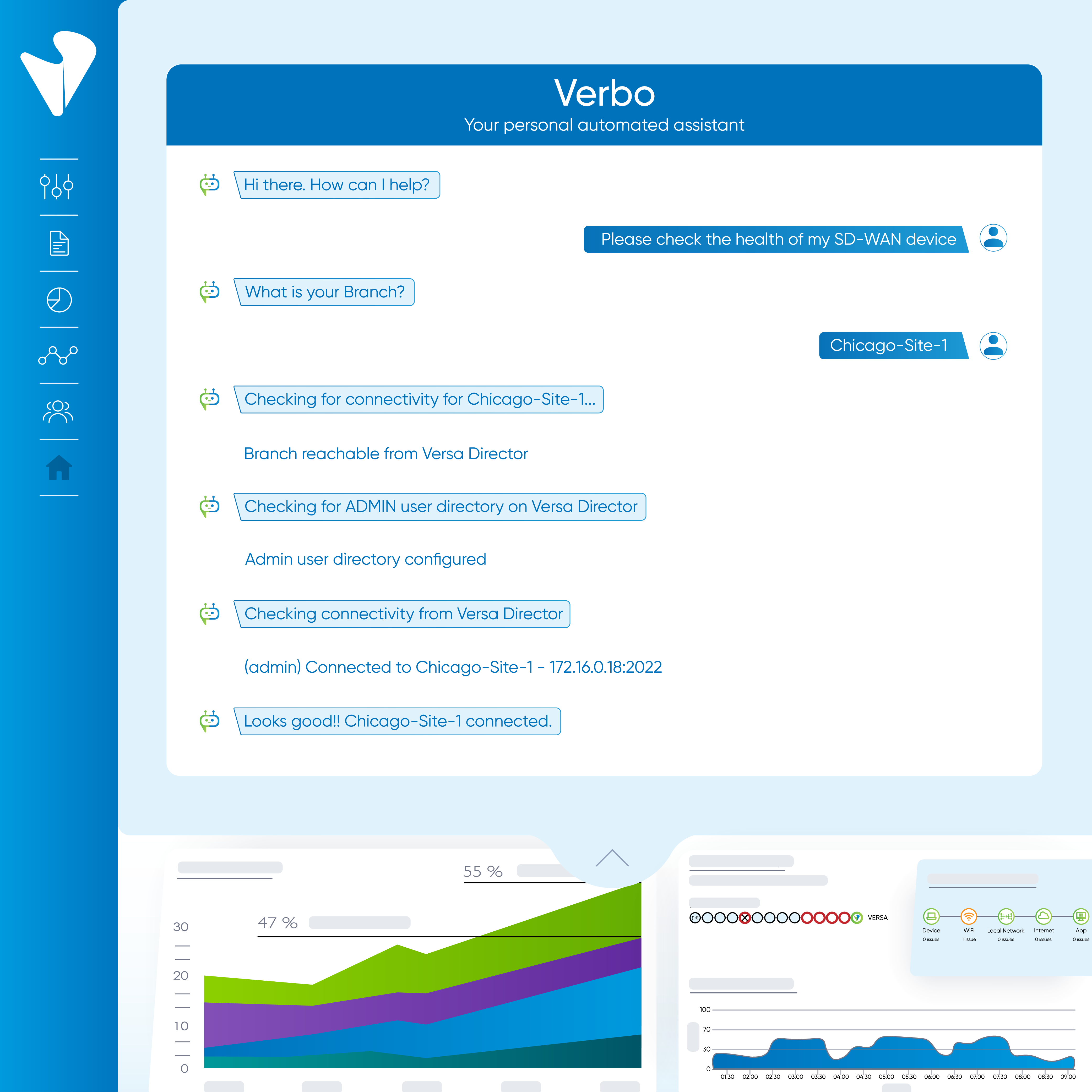 Conversational interface for troubleshooting and policy help. Learn more: VersaGPTAnomaly detection and root cause analysis