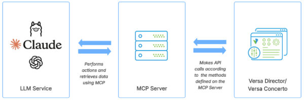 Through an MCP server, an LLM can access an app to perform basic troubleshooting, generate actions, validate configurations, and make decisions intelligently and automatically. In the context of Versa technology, it acts as a broker between your AI and Versa Director, our virtualization and service creation platform, allowing it to dynamically query elements on your network without directly exposing the information to the model.