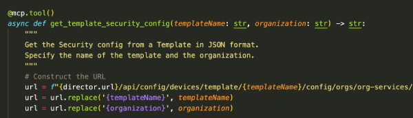 We can also create custom methods for the Versa MCP Server. Although our Versa engineering team has provided ready-to-go functions for core operations, customization is often necessary to cover specific use cases. Since Versa’s MCP is open source, you can add your own methods to fill any gaps. Just check your organization’s AI usage policies and security guidelines before doing so and include detailed comments in new methods so the AI knows when and how to invoke them.