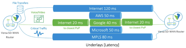 Figure 1 SD WAN Router monitors latencies across various underlays and selecting appropriate path per application