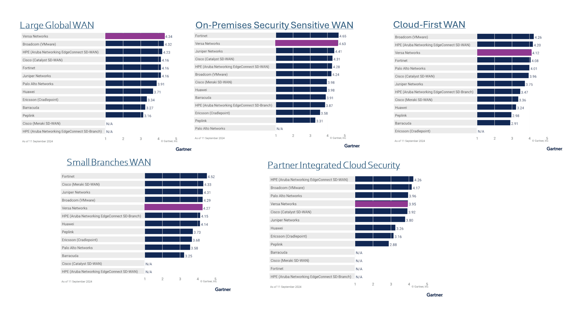 In addition, Gartner’s recognizes Versa for its demonstration of clear strengths that sets it apart from other vendors in Critical Capabilities for SD-WAN for 2024.