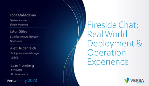 Deploying SD-WAN can be smooth & seamless when done right. There are a lot of moving parts in this journey, including WAN connectivity, branch logistics (power, rack, CPE, onsite person, etc.), provisioning, ZTP, and live traffic cutover. Ensuring a seamless path to “Business critical applications such as POS” is extremely important in this journey. In this session we have a distinguished panel who successfully transformed their multi-vendor legacy network deployments into nimble Versa SD-WAN deployments. This panel will include Eston Stiles from Nordstrom, a luxury retail chain operating in US & Canada and Alex Heidenreich from Victoria’s Secret &Co, a major retail chain with a worldwide footprint and Yogavanam Mahadevan from Exxon. In this session, we will get their insights on how they successfully transformed their networks.