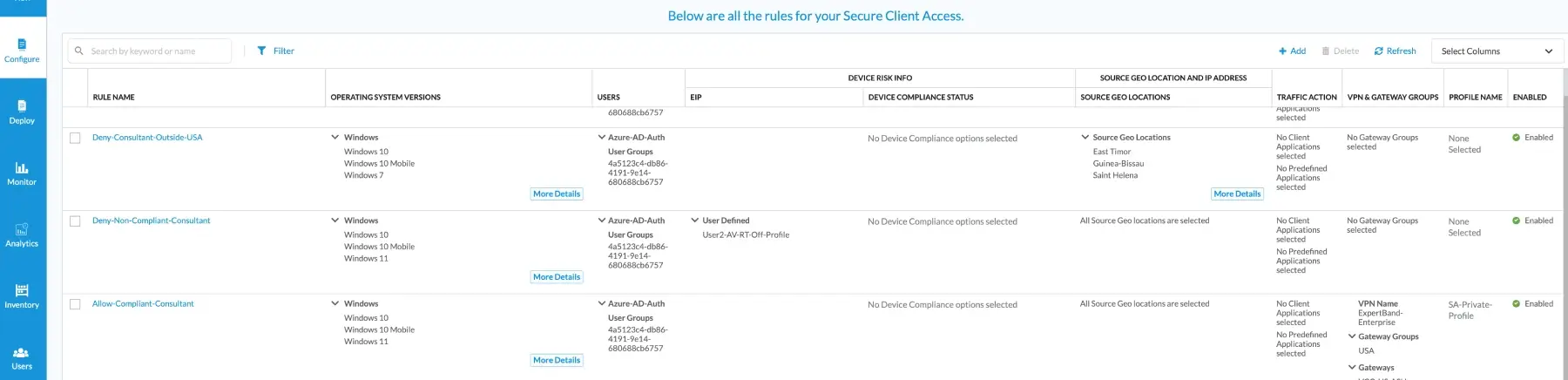 Versa enables you to centrally manage a unified repository of granular Zero Trust policies that are consistently enforced – whether users are working at home, on the road or connecting from an office. Not only does this simplify deployment and administration, it reduces complexity and improves your security posture.